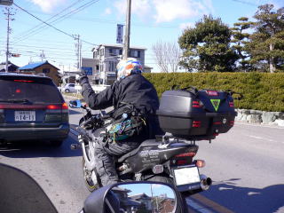 てつやさんに先頭をお任せして、R277を南下です。ここは産業道路と呼ばれているみたいで普段は結構大型車の通行量が多く、少しだけ荒れた路面で気楽には飛ばせません。今日は特に寒くとても爆走気分になれず、ほど良いペースでの移動でした。