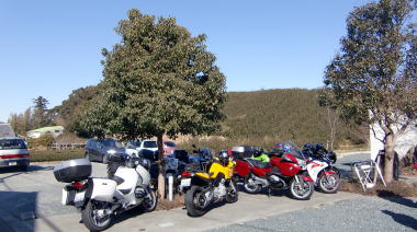 (バイクトラブルで出遅れたtomoさんも無事に到着したので一緒に走ります)