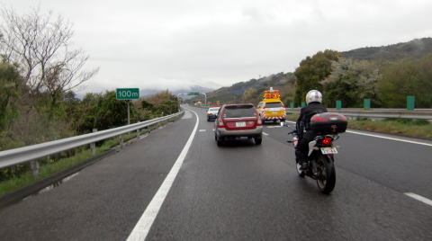 開通の10分ほど前からパトカーが先導し、流れを低速にします。
