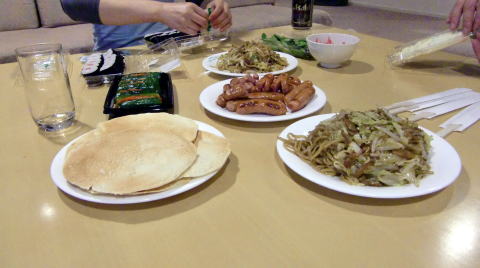 ウインナーに続き、焼きそばも完成