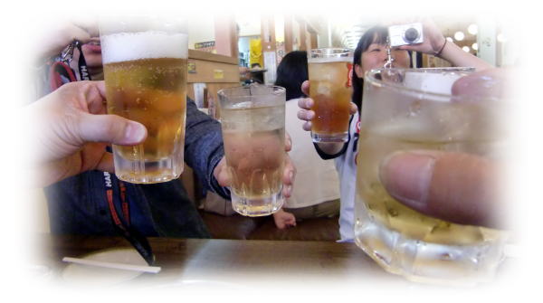 出航後、船内のレストランで 『宴会1回目』スタート!