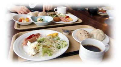 昨夜は各自個室だったので、みかんさんは僕のイビキ攻撃にあわず、朝から食欲も旺盛みたいでした