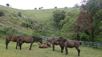 半島の丘には野生馬が生息していて、晴天ならばこのような風景が楽しめます