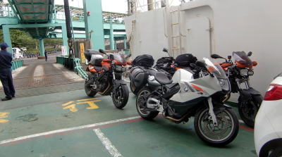 係りの方にバイクの排気量を自己申告し、支払いを済めせたのち、そのまま乗船します。