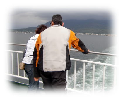 桜島からはフェリーに乗り、鹿児島に向かいます
