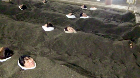 砂の温度は60℃程で、初心者は10分程度が限界みたいですが、ゆかりんはしぶとく入浴していました。