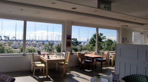お店はヨットハーバーの脇にあります