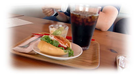 ドリンク+サラダ+ドックサンド(半分サイズ)で、399円