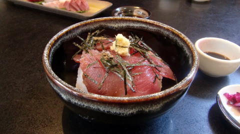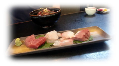 ※ 半分くらいは生姜醤油で鉄火丼風に食べ、次は熱いお茶をかけ、サラサラと頂きます