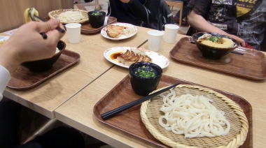 夕食は予想に反し、全員うどんと軽めの食事です