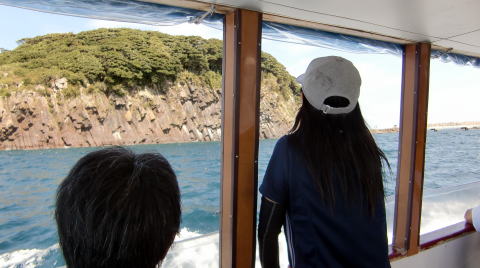 遊覧船は島まで行き、ユーターンして船着場まで戻ります