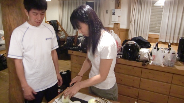山荘到着後、BBQの前に温泉に入ります