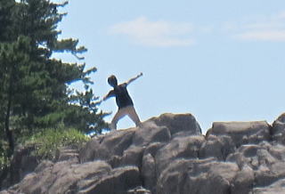 この時、岩壁で怪しげなポージングをしている青年がいました。