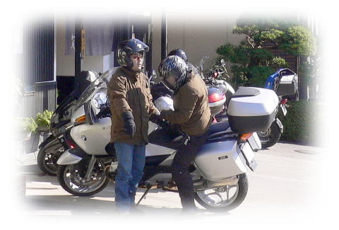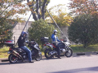 待ち伏せするつもりでしたが既になお君・ナベさんは到着されてました。少し離れた場所にバイクを停め、彼らの反応待ち…