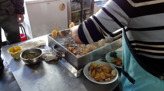 一本60円のおでん数本と、焼き芋を食べて500円程度の昼食でした。