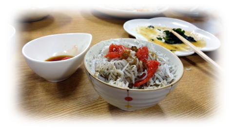 (梅が良い風味を出していて、お勧めのしらす丼)