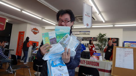 イベント終了後は、手に入れた商品をバイクに積み込み帰路につきます