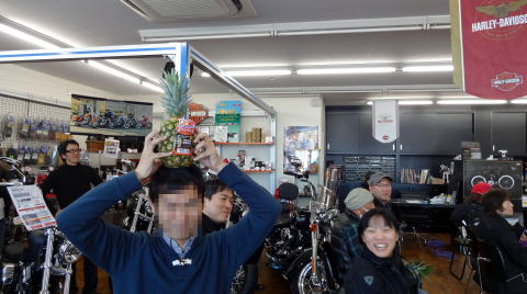 どの景品もバイクでお持ち帰りできますが、パイナップルは積載困難?