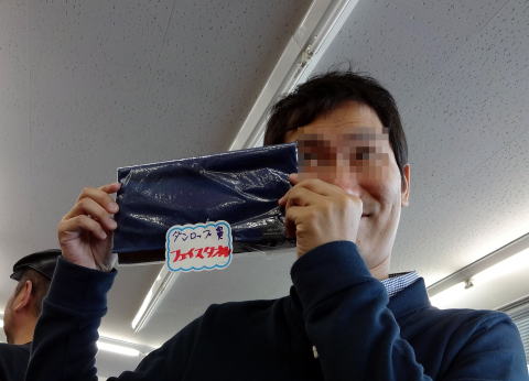 参加メンバー全員、ネックウオーマー・旅のしおり?・ヘルメットカバー・パイナップルなど、次々と当たりました