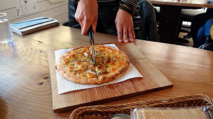 カレーとピザの両方を食べたく、ピザはみんなで分けて食べます