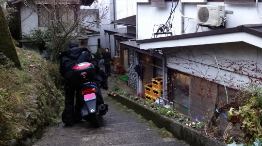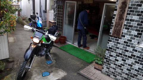 旅館のおばちゃんは、玄関まで来たバイクに唖然としてました