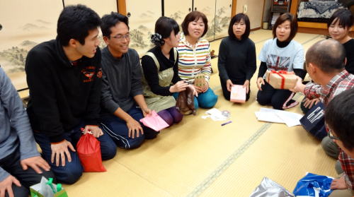 交換スタイルは、みんな輪になって歌いながら隣の人にブツを渡します。