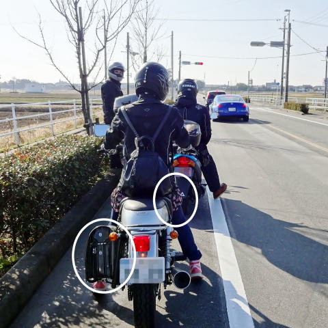 車で参加していた女性はY2Kさんのカブを借り、みんなと一緒に走ります。
