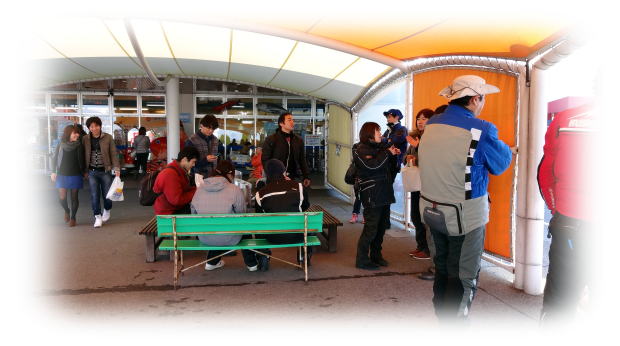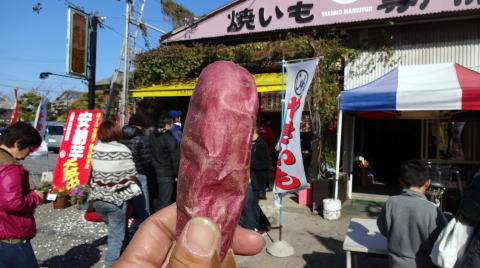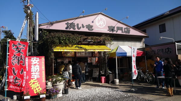 人気店みたいで、たくさんのお客さんが外で芋を食べてます