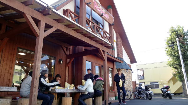 店内で焼きたてのパンを購入し、テラス席で頂きます