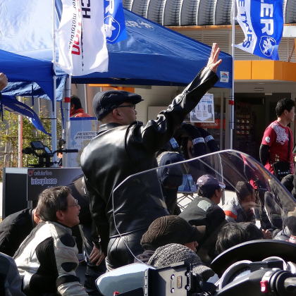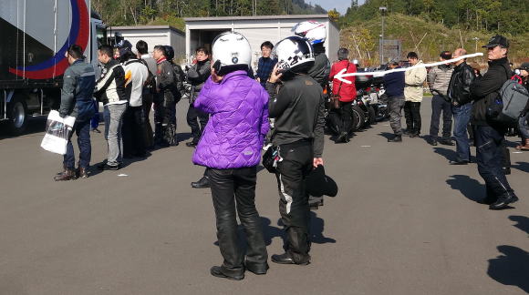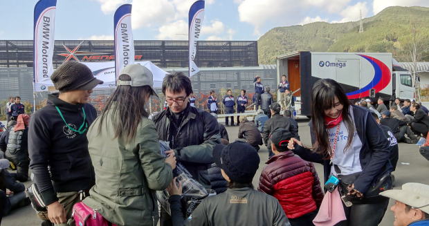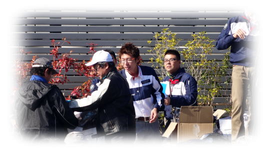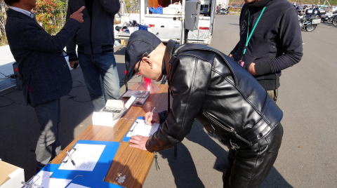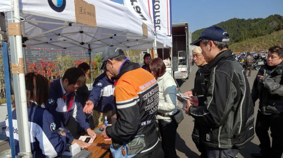 参加賞と、ラリーポイント10ヶ所全てを集めたライダーだけもらえる賞品を受け取ります