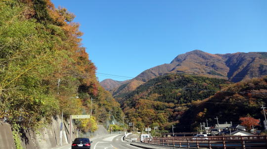 富士川沿いの桜並木の紅葉は綺麗で、気持ちよく快走