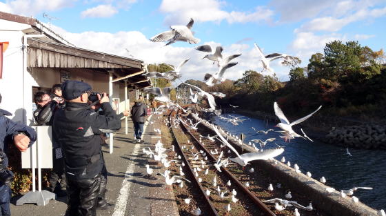 ホームを占領する カモメ