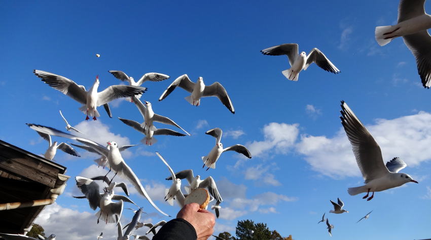 松島や伊根でカモメ体験をしましたが、これだけ多くのカモメには大興奮でした。