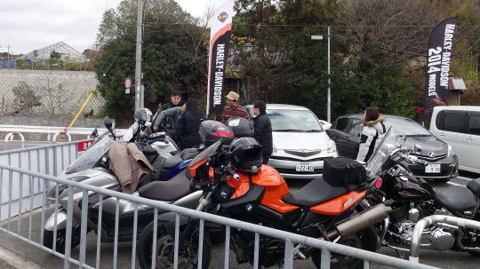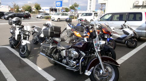 ハーレー店らしく、お店の前を占領するハーレー軍団