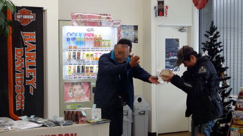 入道さんが店内にいた時、ゆかりんが彼に気付かれないようにコッソリとグローブを交換してみました。