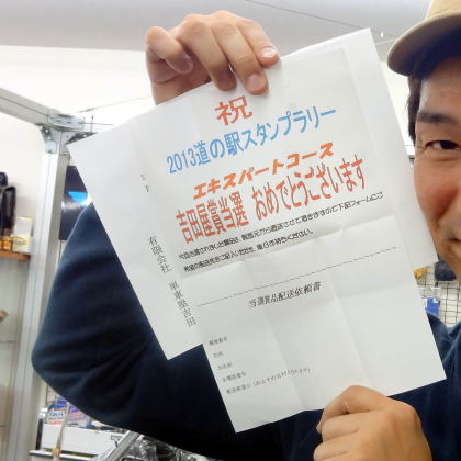 彼は100箇所以上の道の駅に行き、スタンプを押してチャンピオンとなりました