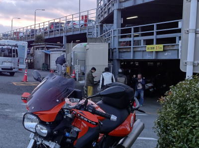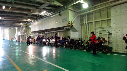 あれこれと楽しんだ船旅も終わり、そろそろ接岸となるのでバイクの所に戻ります。