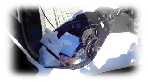 彼のバイクのメットインスペースはブツ満載状態なので、マッタリかも
