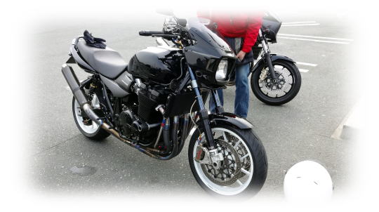 彼のバイクは、フロントフォーク交換などのスペシャル仕様