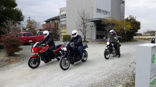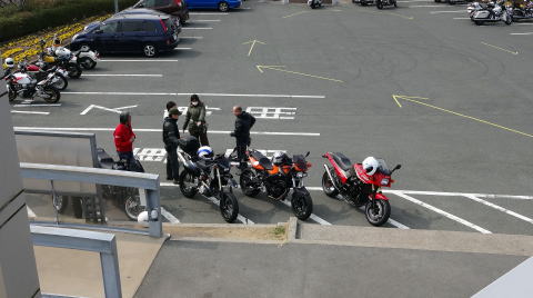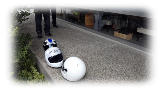 (普通ならヘルメットはバイクに置きますが、強風で落ちちゃいそうなので床に並べてます)