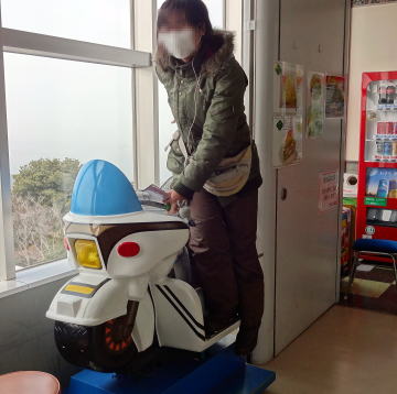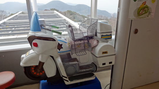 展望台内で不思議な白バイを発見!