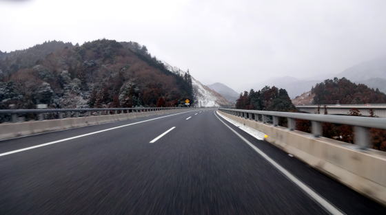 新名神では小雪が舞っていて激寒