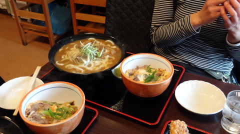 ゆかりんとtetsu君は チーズカレーうどん&ミニ牛とじ丼