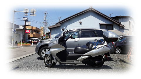 お店の第一駐車場に、どこかで見たようなバイクが…
