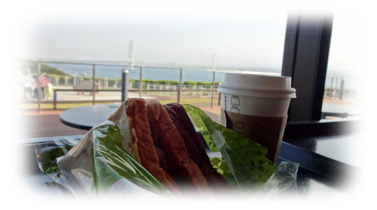 集合場所は明石大橋を渡った、淡路SAスターバックス・テラス席