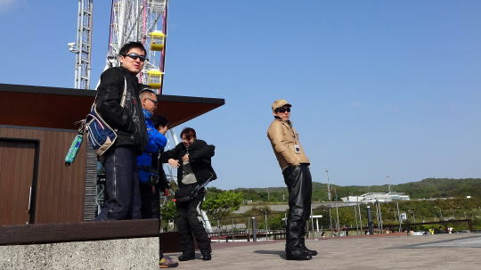 道の駅では時間短縮の為、ヘルメットは被ったままでの押印作業