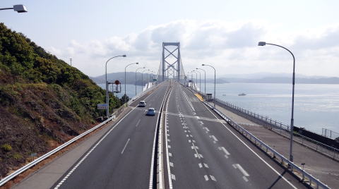 鳴門大橋の車道の下の遊歩道を歩き、渦潮を上から眺められます