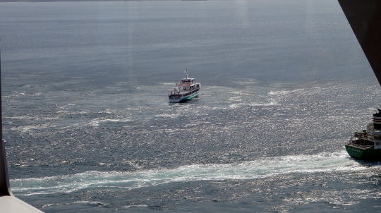 条件が良ければ、あの船の周辺で渦潮が見れるようです