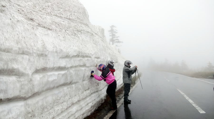 残念ながら濃霧に阻まれ、雪の壁付近には停車できませんでした