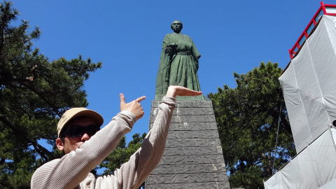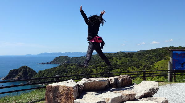 桂浜で太平洋を体で受け止める 女子